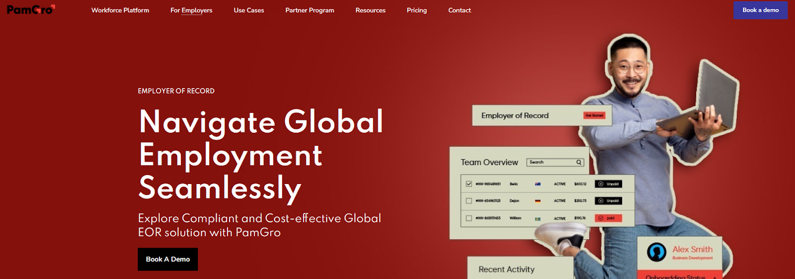 PamGro operates through 14 self-owned entities across APAC, MEA, Europe, and the Americas, with coverage extending to 160+ countries. Its owned-entity structure provides direct compliance control without third-party markups, and pricing starting from approximately AUD $150 per employee per month in markets like India makes it one of the more cost-accessible options for businesses hiring in key AI talent hubs. The trade-offs are visible. Brand recognition is limited, reporting and analytics are basic, and full pricing is not publicly transparent across all markets. For businesses that need sophisticated analytics or the reassurance of a well-established global brand when navigating complex compliance scenarios, PamGro’s offering will feel thin.